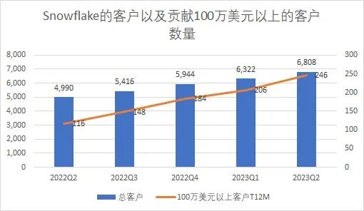 ABM营销对于那种有许多利益相关者影响决策的大型企业客户而言,是最有效的。如下图所示,Snowflake客户以及贡献100万美元以上的客户数量均呈增长趋势,客户内生的数据量增加和数据分析频率的提高,都能自动带来收入贡献的上升,公司还更能不断推出新功能新产品。