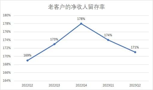 虽然老客户的净收人留存率最近季度有所下降,但还保持高位。