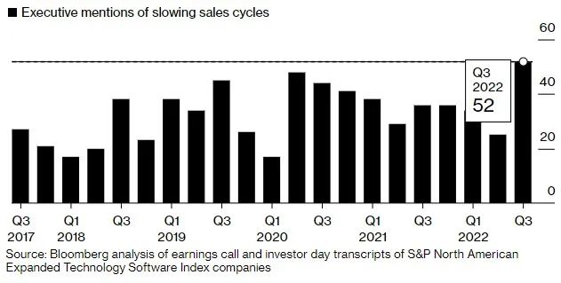 此外,据彭博社对近120家北美技术软件上市公司的评估,在二季度财报电话会议中,较长的销售周期被提及52次,是至少五年来最多的一次,是上一季度的两倍多。