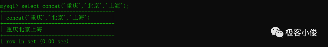 语法:concat(字符串1, 字符串2,...) 字符串参数用逗号隔开!
