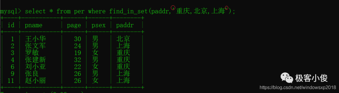 使用find_in_set函数进行查询整张表的时候, 一次返回多条记录的情况。