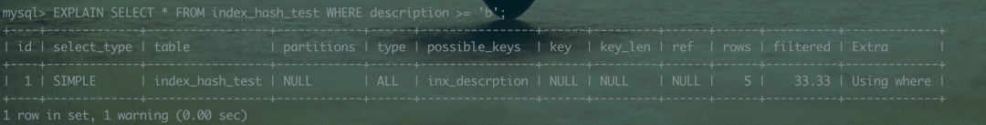 EXPLAIN SELECT * FROM index_hash_test WHERE description >= 'b'