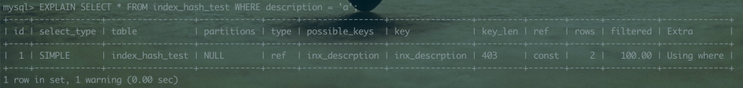 EXPLAIN SELECT * FROM index_hash_test WHERE description = 'b'
