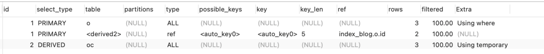 extra 包含 Using filesort 和 Using temporary 考虑优化。