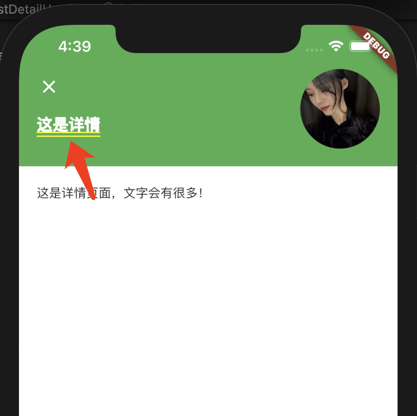 组件加上关闭按钮和详情标题即可。这里为了保持页面顶部覆盖状态栏,使用的是 CustomScrollView