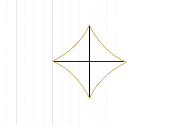 星星实际上我们可以用四条像下面的弧线来绘制。然后再调整弧线半径就可以实现绘制星星的效果了。