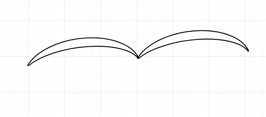 绘制大雁其实也是四条弧线,左右各一对翅膀,调整弧线的半径后就可以调出大雁的样子。这里我们左右翅膀分别用两条闭合的弧线完成绘制。
