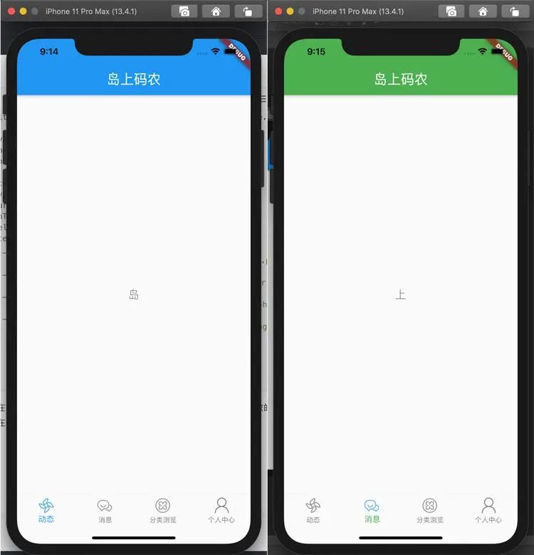 通过这种方式可以在 main.dart 中的 MaterialApp 中统一配置色调和字体达到全局一致的目的。如果想要调整色调和字体,只需要在一处修改即可。最终结果如下图所示(有图更改了主题色为绿色)。