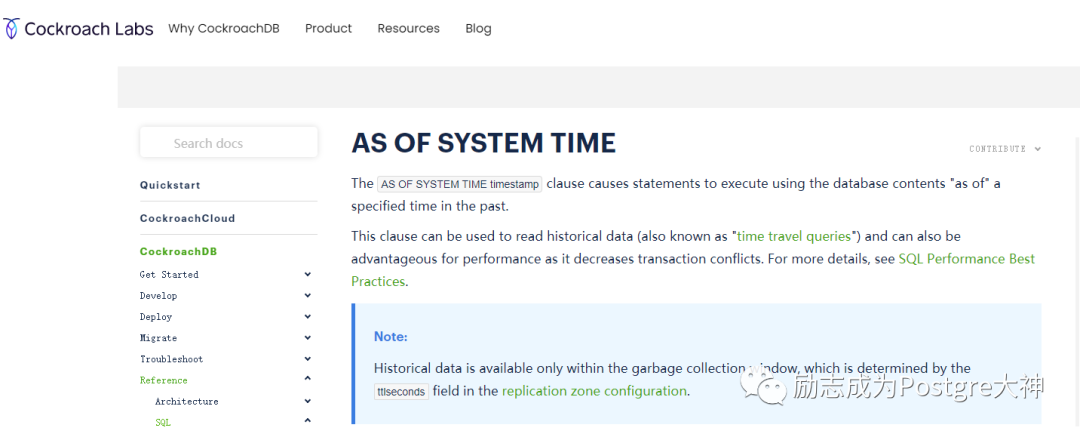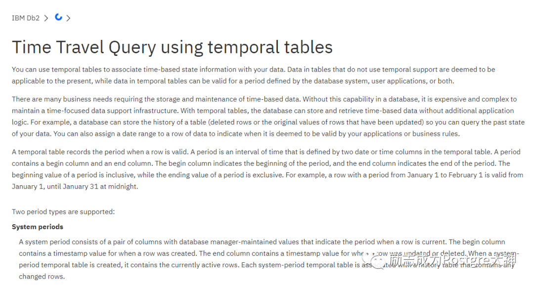 当前现在市面上有一些衍生版的PG,比如CockroachDB。提供了SQL 2011中的AS OF SYSTEM TIME语法。