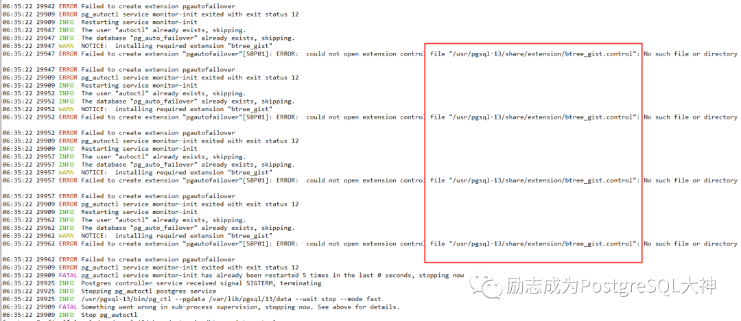 但是还是没postgres进程,仔细观察最后是一步Stop pg_autoctl了.