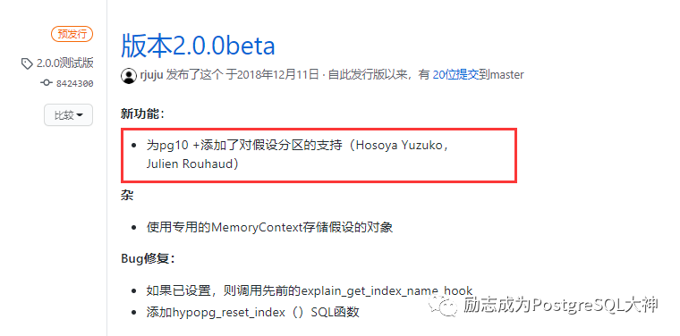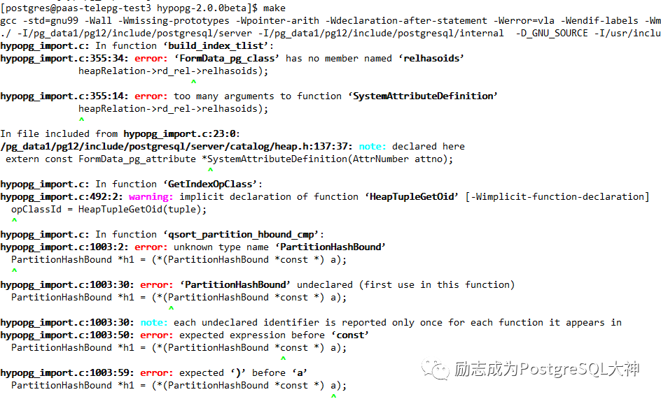 而且这一版本有点老,还在2018年12月发布的。我下载后结果编译了半天也没办法成功,也有可能是我的环境安装了1.1.4版本没有铲干净,看来只能等新版本了,暂时这个功能还不能在最新的 PostgreSQL12.5中使用,我调整了一些代码也没办法编译。