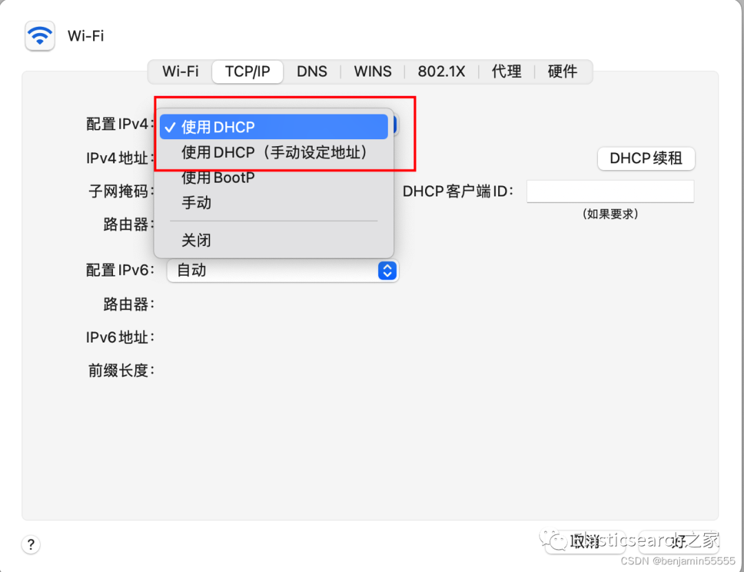 Dynamic Host Configuration Protocol,这个协议专用于我们的电脑连接上网络后,为我们的电脑自动分配IP。我们打开电脑的网络高级设置,里面是可以看到这个协议的身影的