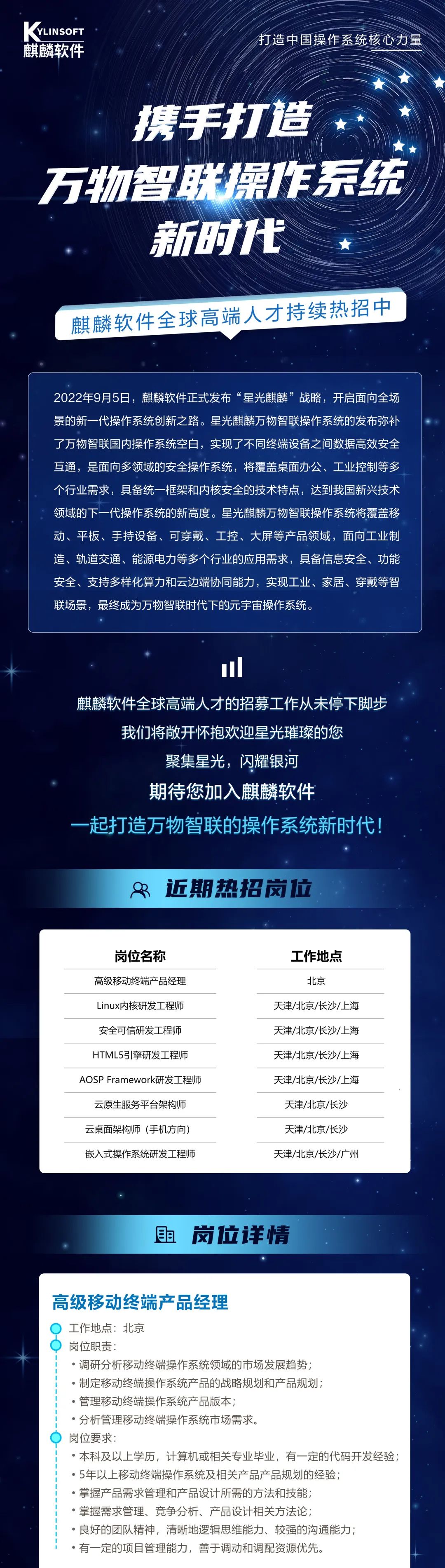 携手打造万物智联操作系统新时代|麒麟软件全球高端人才持续热招中