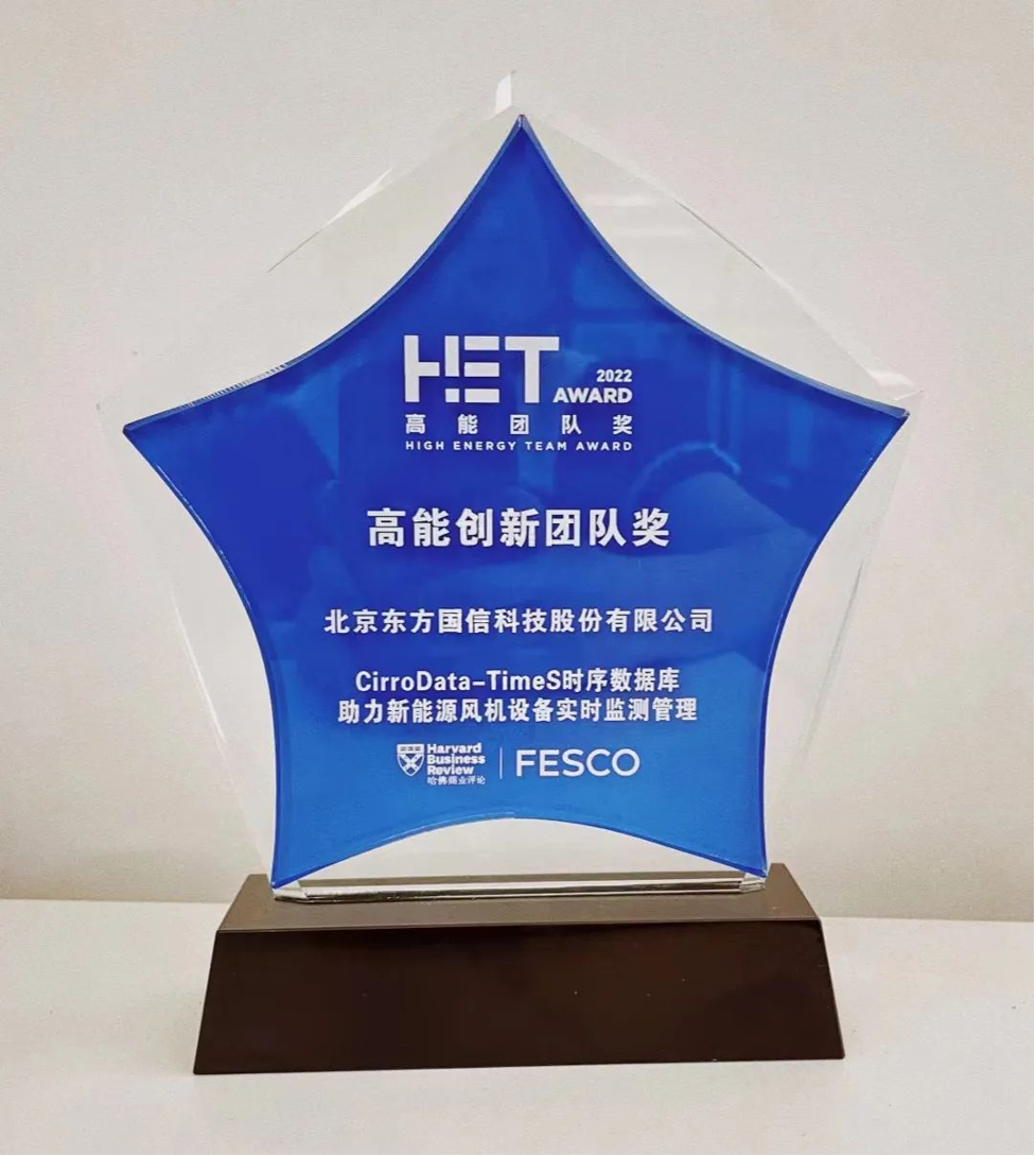 2022年8月18日,《哈佛商业评论》中文版携手FESCO在北京举办第八届“人才经济论坛”。东方国信CirroData-TimeS时序数据库在新能源领域的创新应用案例在百余个优秀团队中脱颖而出,荣获“高能创新团队奖”。