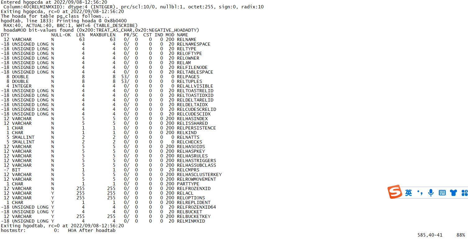 12 VARCHAR N 5 5 0/ 0 0 0 200 relhasindex