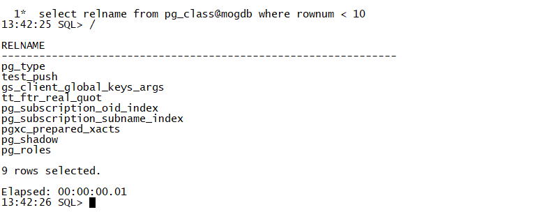 13:59:30 SQL> select test1 from test_case_intensive@mogdb;