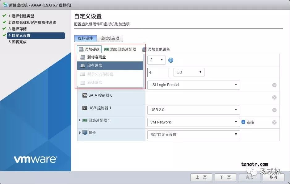 6.之后点击添加硬盘--现有硬盘(用于引导)