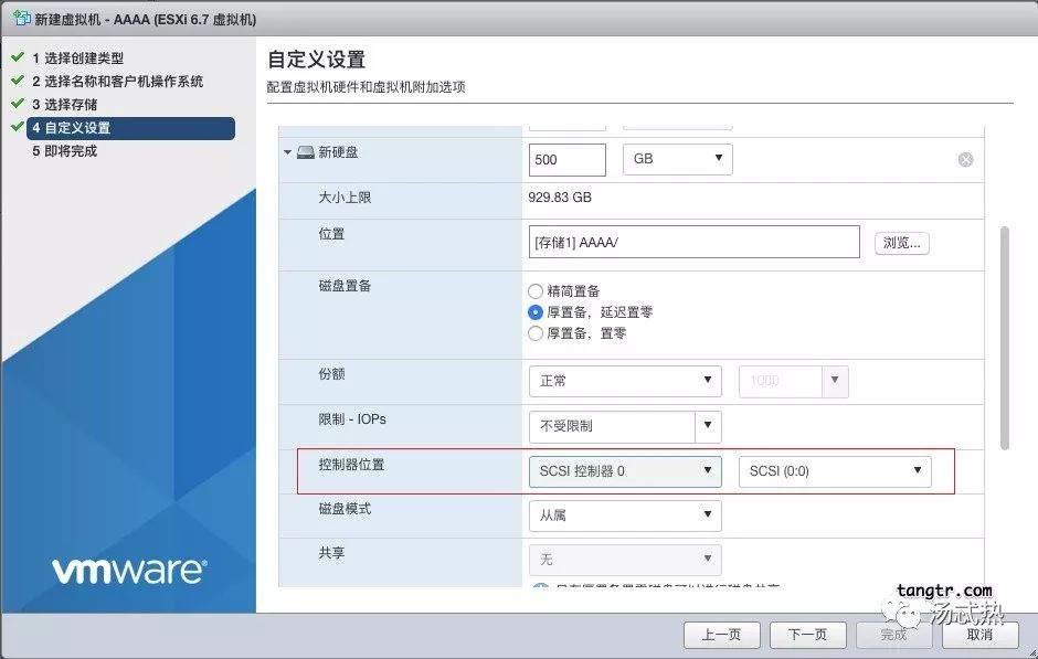 硬盘设置多大,自行设置,控制器位置选择SCSI。