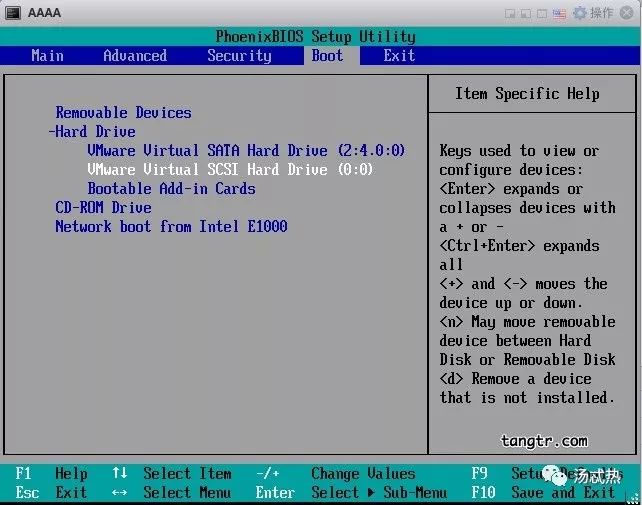 12.虚拟机开机后进入BIOS设置,将SATA放在最上面,后面是SCSI。