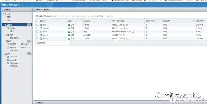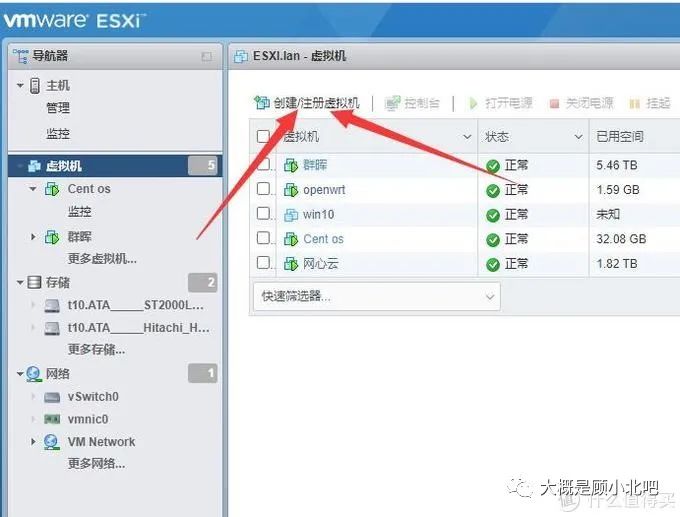 这是我已经创建好的虚拟机,下面我来创建一个群晖并且演示rdm直通,其他虚拟机大家就自行创建啦。本人没有软路由的需求,所以只安装了一个op,其实是为了挂JD、