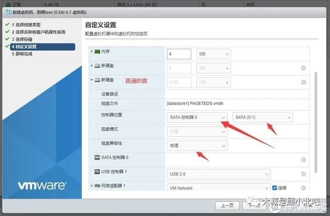 您就可以在创建虚拟机的时候使用rdm直通的硬盘了,如上面的图!
