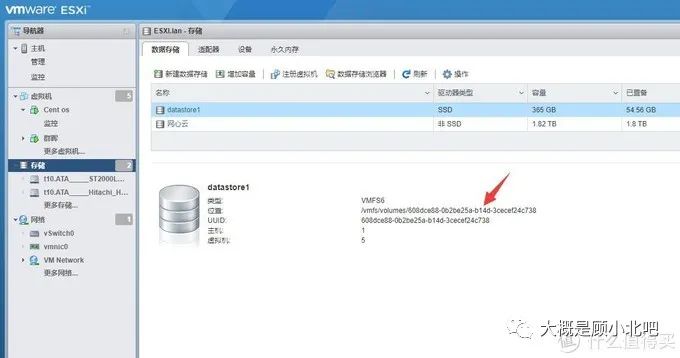 登陆esxi服务端->存储->设备->找到自己磁盘的id(在括号中的)