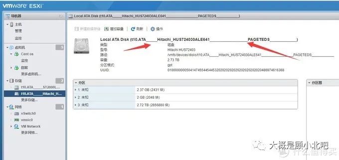 vmkfstools -z vmfs/devices/disks/t10.ATA_____Hitachi_HUS724030ALE641_________________P8G30E6T____________ /vmfs/volumes/608dce88-0b2be25a-b14d-3cecef24c738/P8G30E6T(改成喜欢的名字).vmdk