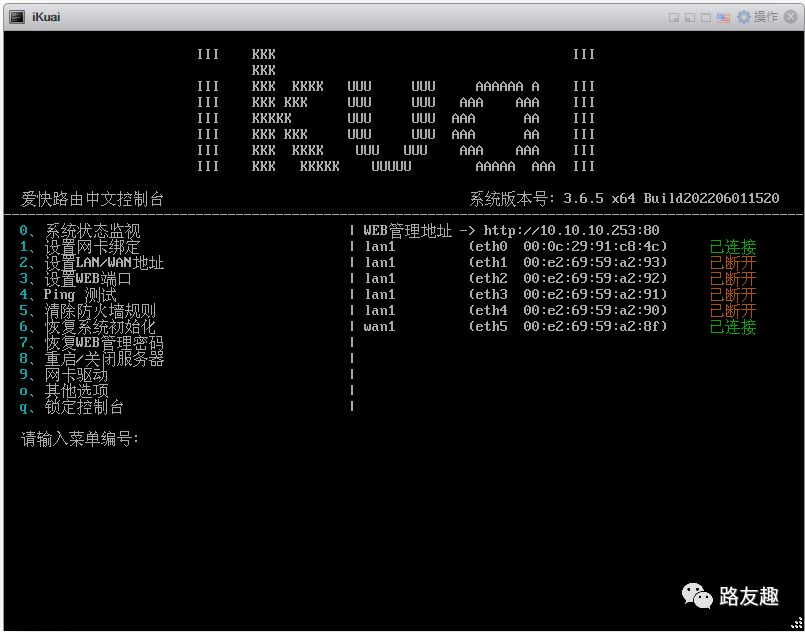 这样我们软路由挡板上面 ETH5、4、3、2、1、0 在ESXI环境中识别出来的顺序变成了 ETH0,1、2、3、4、5