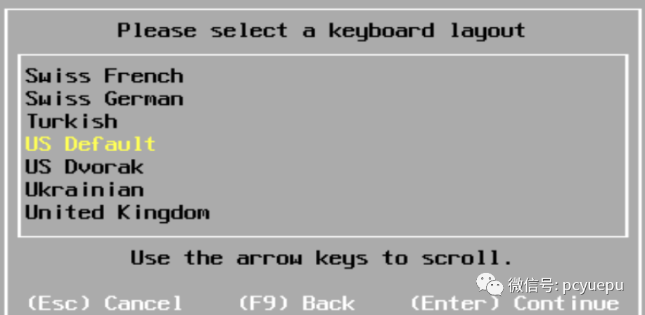 6. 选择键盘类型,默认即可,按“回车”进入下一步