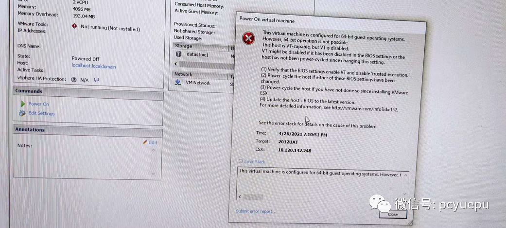 您已经配置此虚拟机使用64位客户操作系统。然而,64位操作系统不可用。此主机具有虚拟化支持能力的,但虚拟化技术被禁用。