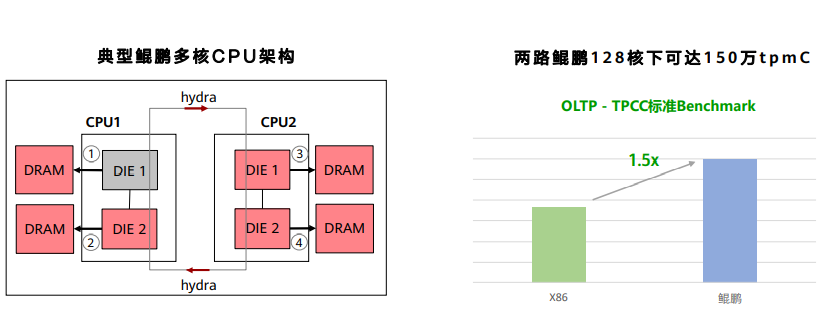 注:2两路x86 6148,实验室环境下(除处理器不同,其他配置相当),Oracle为<100万tpmC、PG<70万tpmC、MySQL<50万tpmC>
