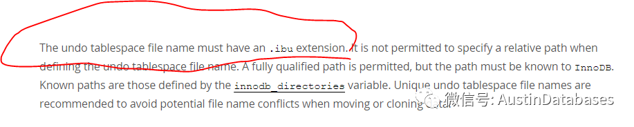 这五个部分一般不设置的情况下,都是按照datadir的目录进行设置的,同时新添加的undo log的名字的结尾必须是 ibu ,因为系统会在文件目录中搜索以ibu为结尾的文件作为undo log 添加的表空间。