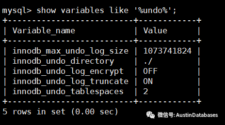 关于UNDO TABLESPACE 在MYSQL 8 和 MYSQL 5.7 有一些区别,首先mysql 5.7 的 undo log 默认是3个, MYSQL 8 默认是2个 innodb_undo_001 和 innodb_undo_002, 在之前 MYSQL 5.7 之前UNDO LOG 是无法在系统运行的时间进行添加的,而在8.014 版本后,MYSQL 8 是可以动态的添加UNDO LOG TABLESPACE