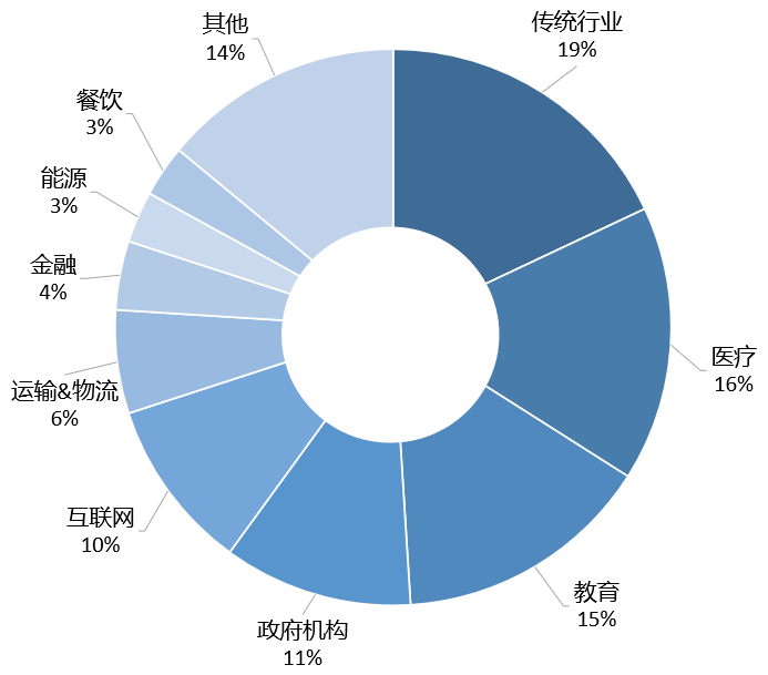 从行业划分来看,8月份国内受勒索病毒影响的行业排名前三的是传统行业、医疗行业、教育行业。其中,部分传统行业的企业由于大量设备疏于安全加固与漏洞修复,受勒索病毒感染严重。