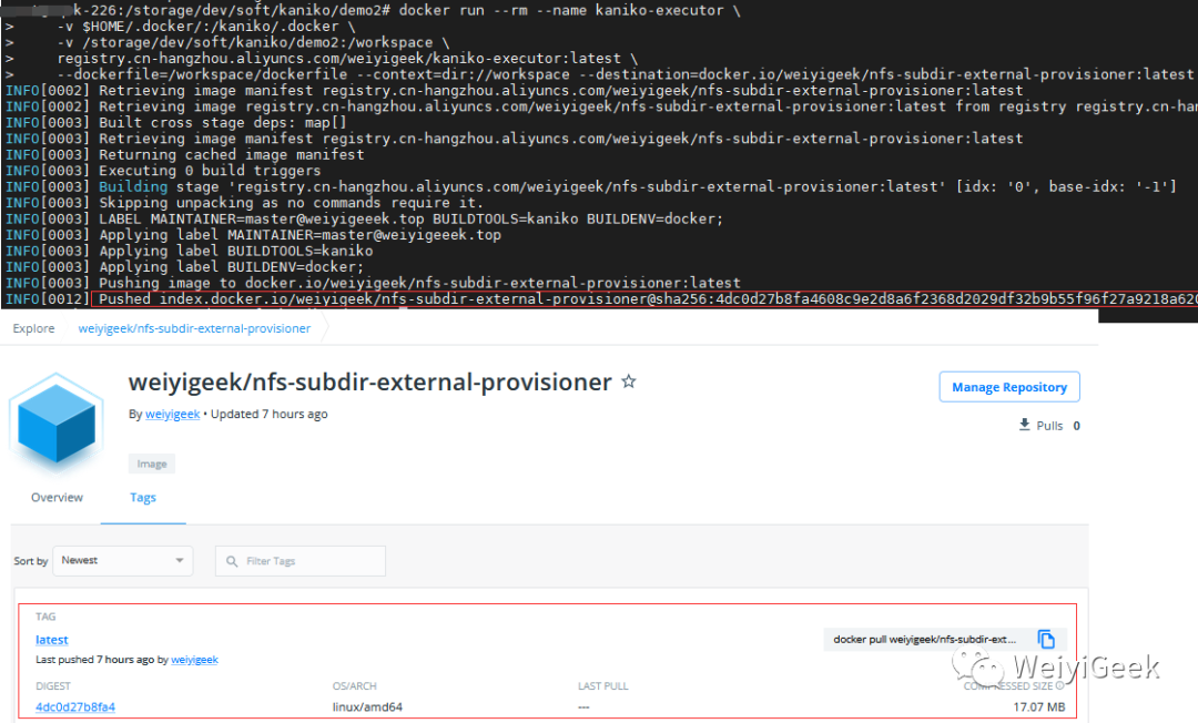 INFO[0012] Pushed index.docker.io/weiyigeek/nfs-subdir-external-provisioner@sha256:4dc0d27b8fa4608c9e2d8a6f2368d2029df32b9b55f96f27a9218a620ea14828