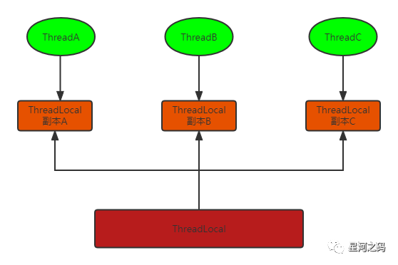 也就是说:ThreadLocal为每一个线程都提供了变量的副本,使得每个线程在某一时间访问到的并不是同一个对象,这样就隔离了多个线程对数据的数据共享,也就不存在并发问题。