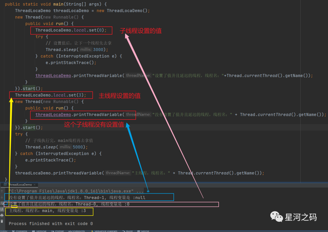 通过这个案例我们发现,第一个子线程设置了值,它拿到了,第二个线程没有设置值,没有拿到,主线程最后执行,也是拿到了自己的值,「再一次证明了ThreadLocal的值是线程隔离」。