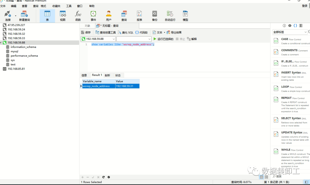 TX errors 0 dropped 0 overruns 0 carrier 0 collisions 0 数据库连接保持原链接,直接执行参数查询,已经切换到node5主机上,但本次执行使用8.077秒,大部分时间用来切换链接地址。