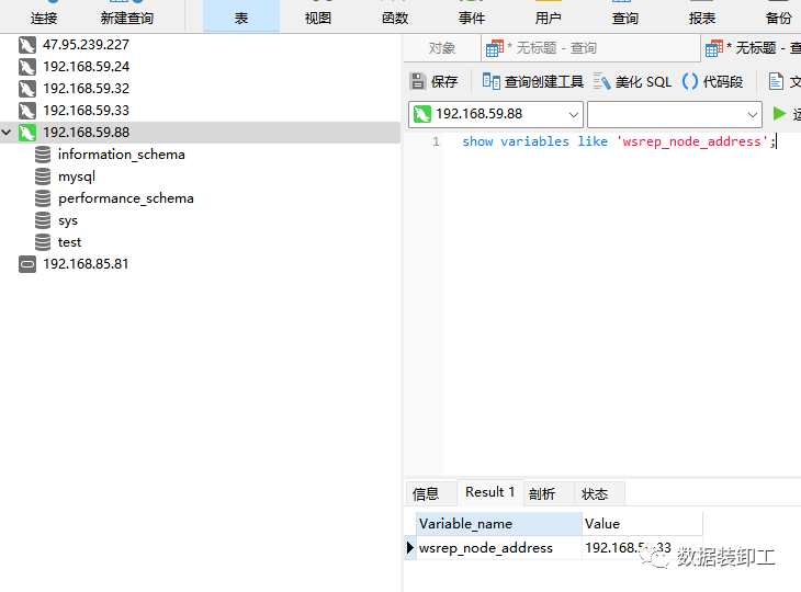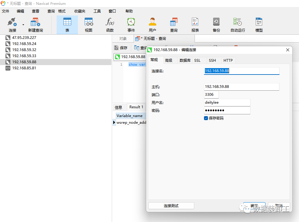 使用Navicat工具通过192.168.59.88登录MySQL数据库。