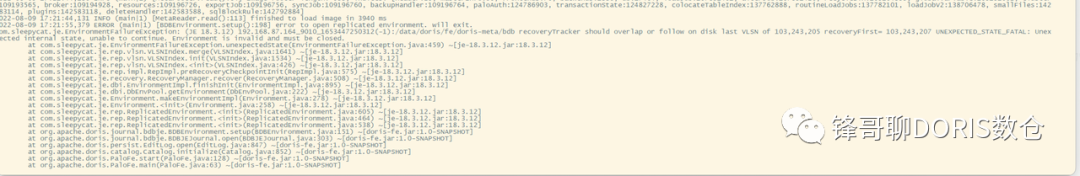 java.io.IOException: the self host 172.31.26.7 does not equal to the host in ROLE file 172.17.0.1. You need to set 'priority_networks' config in fe.conf to match the host 172.17.0.1 at org.apache.doris.catalog.Catalog.getClusterIdAndRole(Catalog.java:903) at org.apache.doris.catalog.Catalog.initialize(Catalog.java:805) at org.apache.doris.PaloFe.start(PaloFe.java:125) at org.apache.doris.PaloFe.main(PaloFe.java:63)