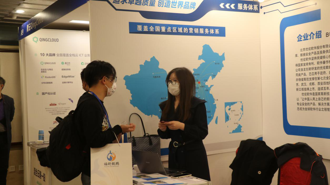 展会现场,优炫软件携优炫数据库产品亮相,并在现场一对一解答疑惑,帮助参会嘉宾了解国产数据库现状和优炫数据库产品技术及优势,参观人员络绎不绝,驻足问询。