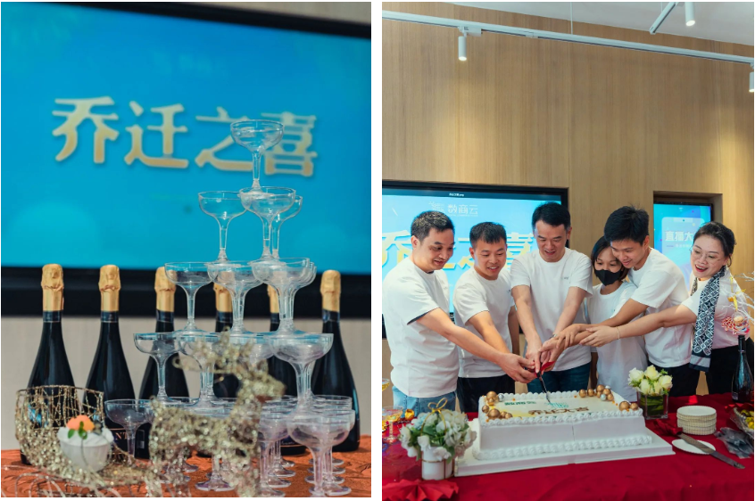 吉时良辰,香槟开启,蛋糕切开,分享喜悦,举杯共庆。乔迁仪式在员工们的欢声笑语中圆满结束。