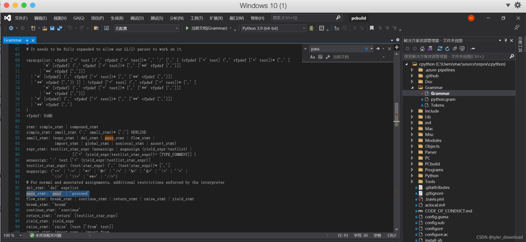 python本身就是开源项目,因此其编译器源码非常容易获得,而且整个项目考虑到在各个平台上开发的需求,因此都做了专门配置。我发现基于windows,利用vs2019来研究Python内核代码最为合适,首先我们看看它的下载和编译。第一步是要下载代码,利用git即可,命令如下: