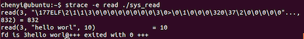 然后使用gcc如前那样将其编译成格式为elf的可执行文件sys_read,接着调用如下命令: