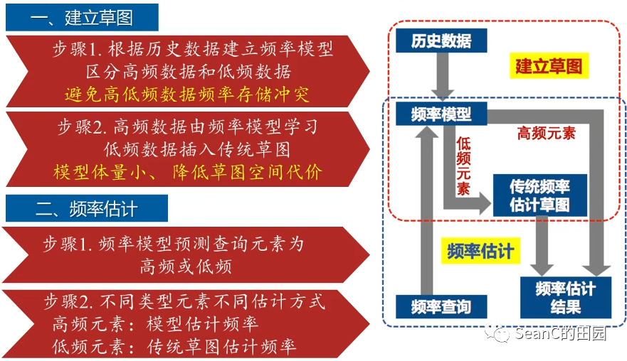 思想:将机器学习方法与传统频率估计草图相结合 目的:降低草图的空间代价、提高频率估计准确性