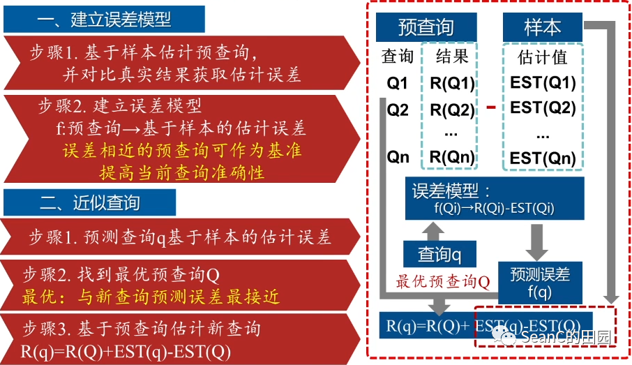 思想:将机器学习方法与抽样、预聚集查询相结合 目的:提高近似查询的准确性、降低样本量、提供误差界限