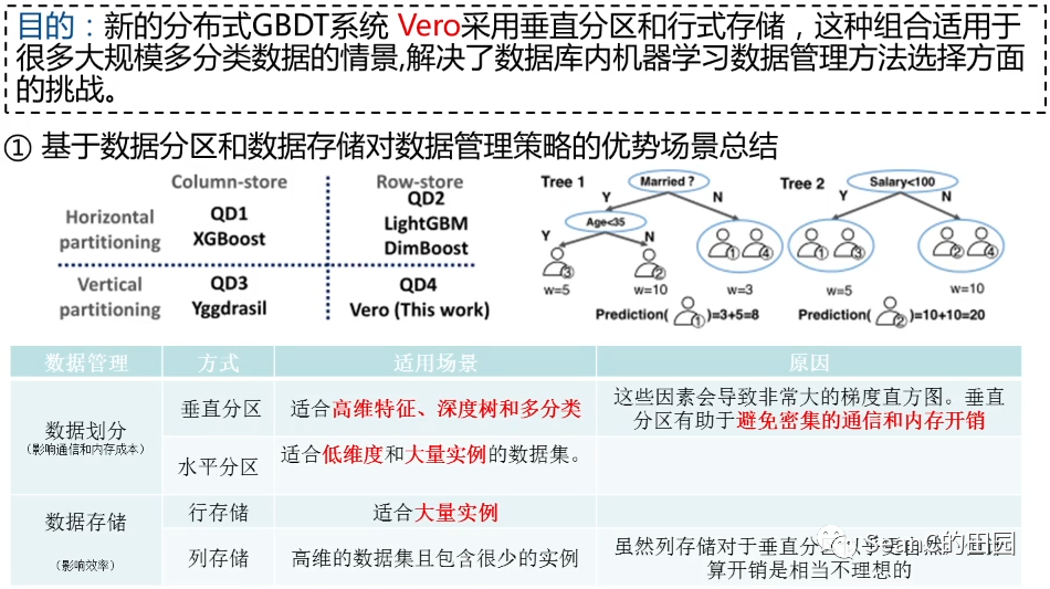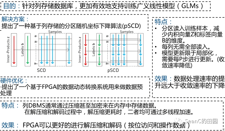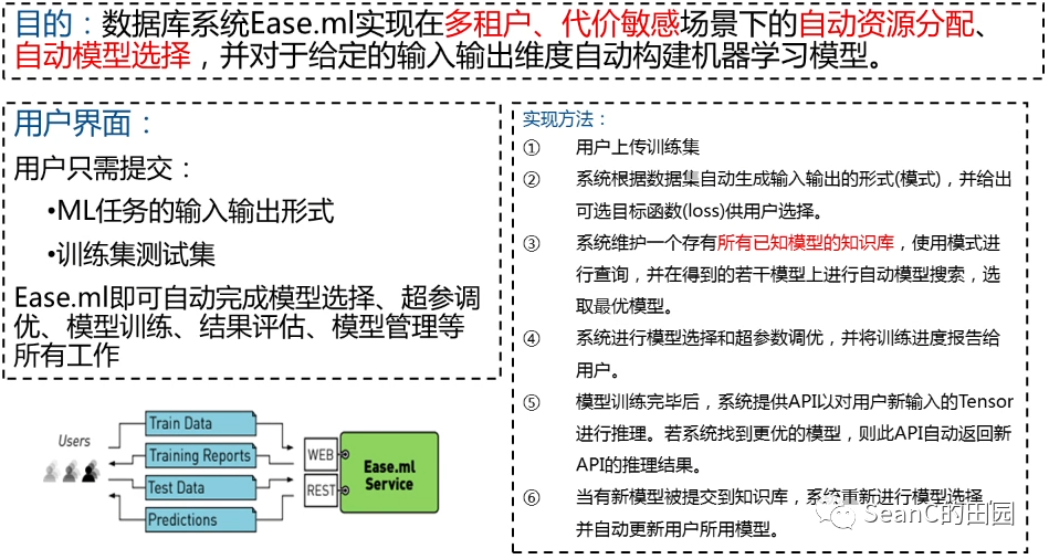 数据管理困难:机器学习算法的训练效果高度依赖数据规模,但过大的数据规模往往给数据管理带来极大的困难 系统高效的数据管理:使用成熟数据库管理大数据:高效率、高可靠性、高质量 数据传输代价高:训练时需要将数据从数据库内查询并拷贝出来,训练及其难以容纳这些数据的同时,还浪费大量时间在数据传输的过程中,更带来数据泄露的隐患 数据始终在数据库内部:训练时无需拷贝数据到数据库外部,查询结束后可以在数据库系统内直接进行训练,高效且安全性更高 难以设计高效的训练pipeline:从数据库内查询数据涉及join等昂贵的外存操作,由于训练机器的存储空间限制、网络传输速率限制等因素,常常会出现训练进程等待数据的情况 易于机器学习全流程的管理:便于利用数据库进行数据管理、模型管理,利用数据库的任务调度能力管理训练pipeline,减少训练gap