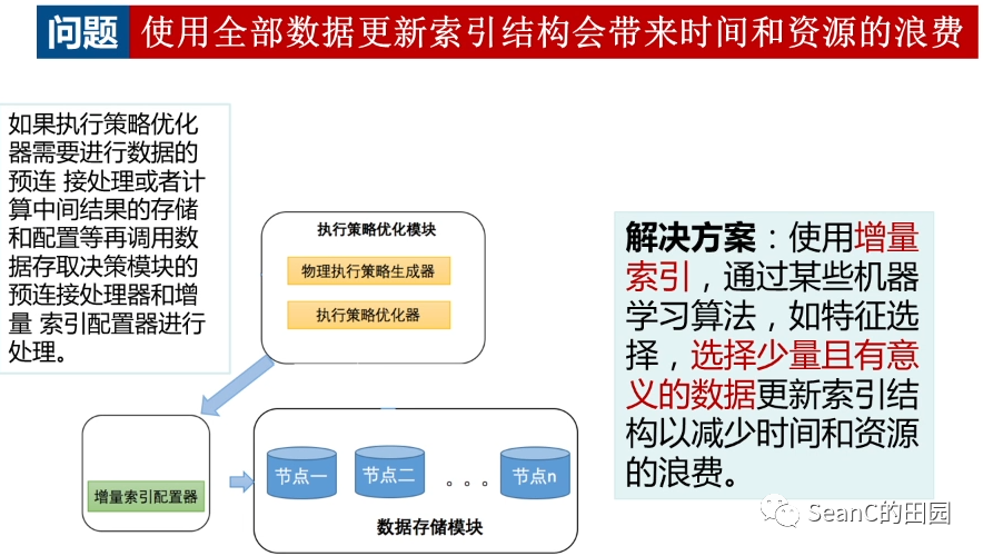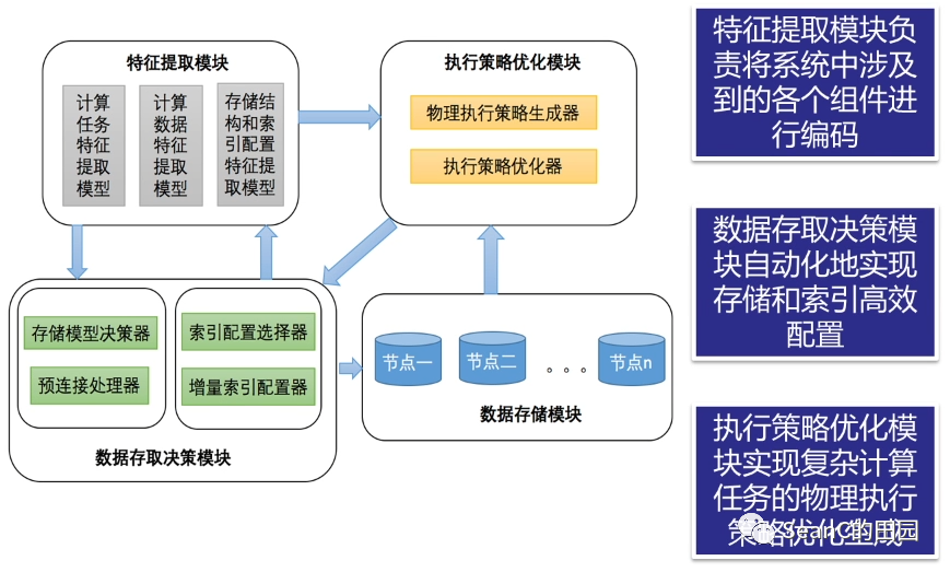 目的:实现文档数据的自动化管理,毫无经验的用户也可以高效管理数据 效果:首次提出了文档数据的自动管理系统,该系统可以自动高效地进行文档数据的管理 解决方案:设计基于机器学习的自动存储方案,实现存储结构的自动选择;设计了基于多核卷积神经网络的自动化索引选择方案