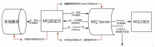 其中,补偿阶段用于解决消息Commit或Rollback发生超时或者失败的情况。