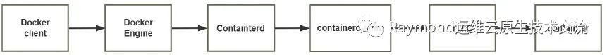 首先执行docker命令,这个docker命令实际上它是一个客户端,通过连接docker engine就是docker引擎,docker引擎和docker client有连接接口,然后docker引擎去调用containerd,然后再去连接containerd-shim这实际上就是一个所谓的中间的垫片,然后再去连接到runc,然后再去运行docker对应的容器,这就是docker的运行机制;这里边涉及到两个组件一个就是containerd,containerd属于docker的一部分,还有一个是runc,这两个合起来构成了docker运行的一个环境有一个专业的称呼叫运行时。